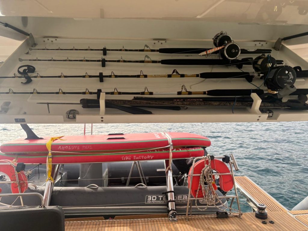 | Jouets | Moteur hors-bord 50 CV, ski nautique, wakeboard, palmes-masques-tubas, paddles, seabobs, matériel de pêche (inclus pêche au gros, selon possibilités) |